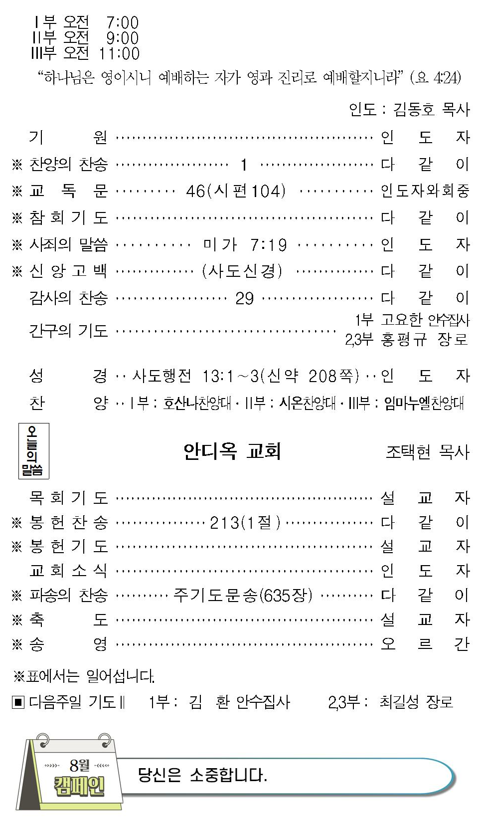 8. 모든 교우들은 '8월 기도문'으로 기도하시기 바랍니다.