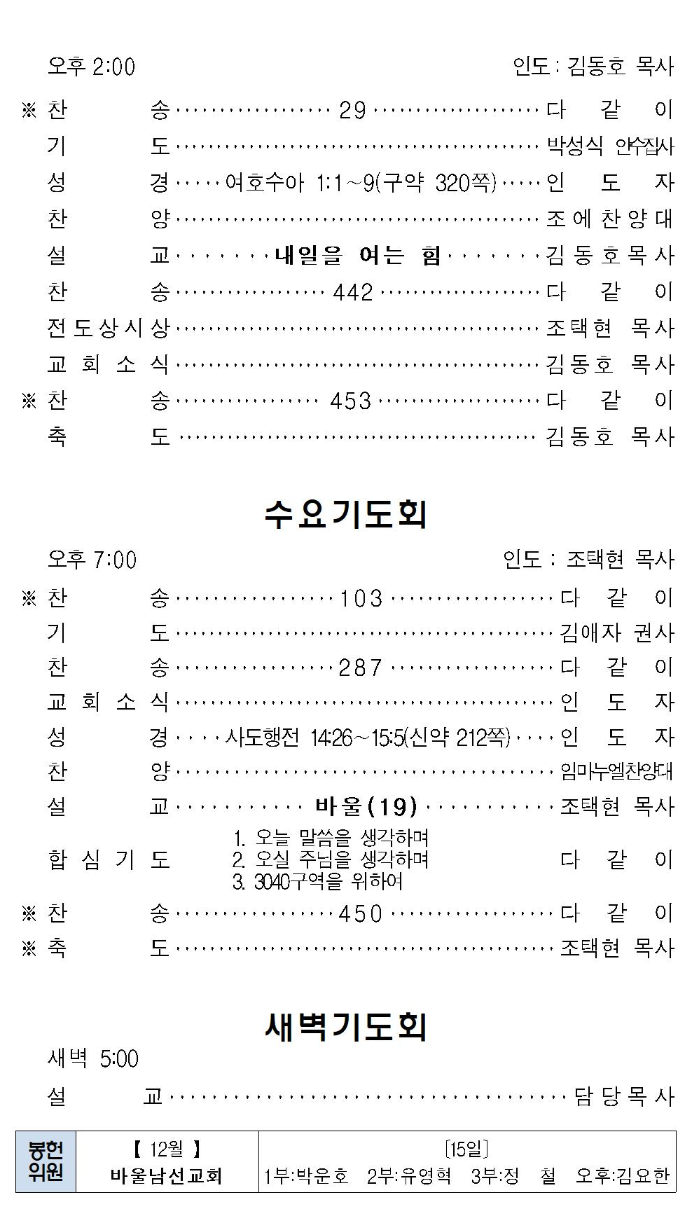 - 새해 새벽기도회: 1월 6일(월)~10일(금) 새벽 5시