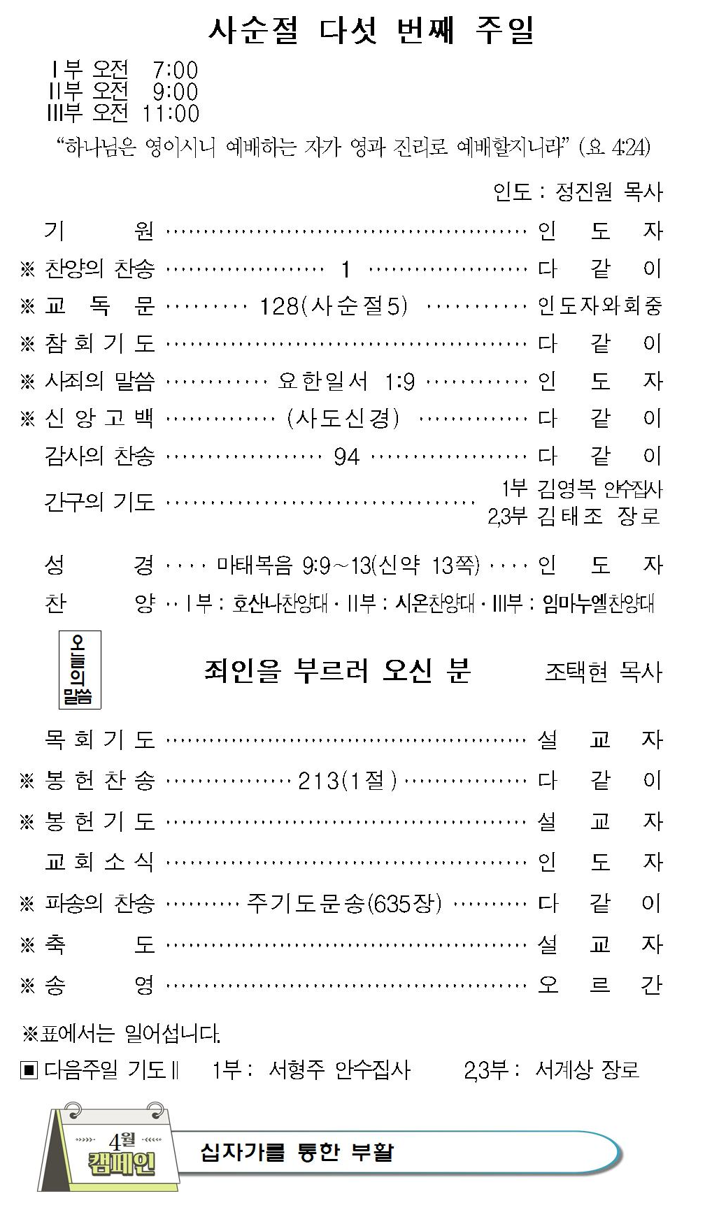 7)마태는 세리였고, 예수님은 그를 부르시고 함께 식사하셨습니다. 바리새인은 이를 정죄했지만, 예수님은 병든 자에게 의사가 필요하다고 하셨습니다. 예수님께 마음을 여는 죄인은 치유 받지만, 닫는 악인은 스스로 천국 문을 막습니다. 사순절, 주님의 고난을 기억하며 회개로 하나님의 평화를 누리시기 바랍니다.