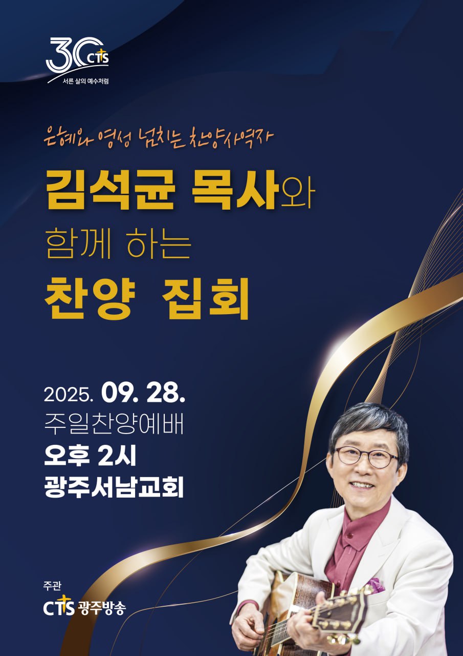 - 9월 28일(주일) 오후예배는 찬양사역자 김석균 목사 초청 찬양집회가 있습니다.