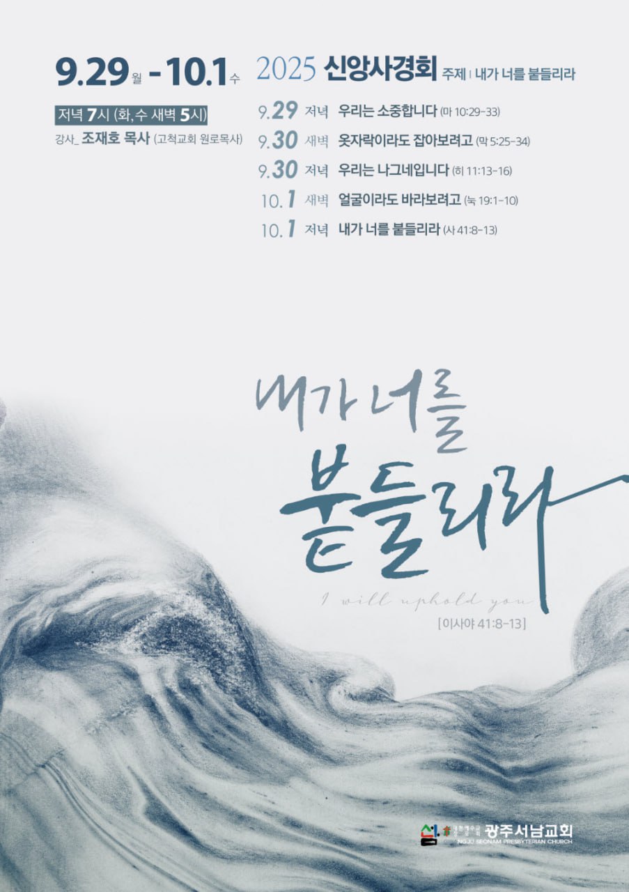 대한예수교장로회 광주서남교회E-mail: gjsnc@hanmail.net광주광역시 남구 진다리로 12. ☏062-652-1004수신거부 Unsubscribe |