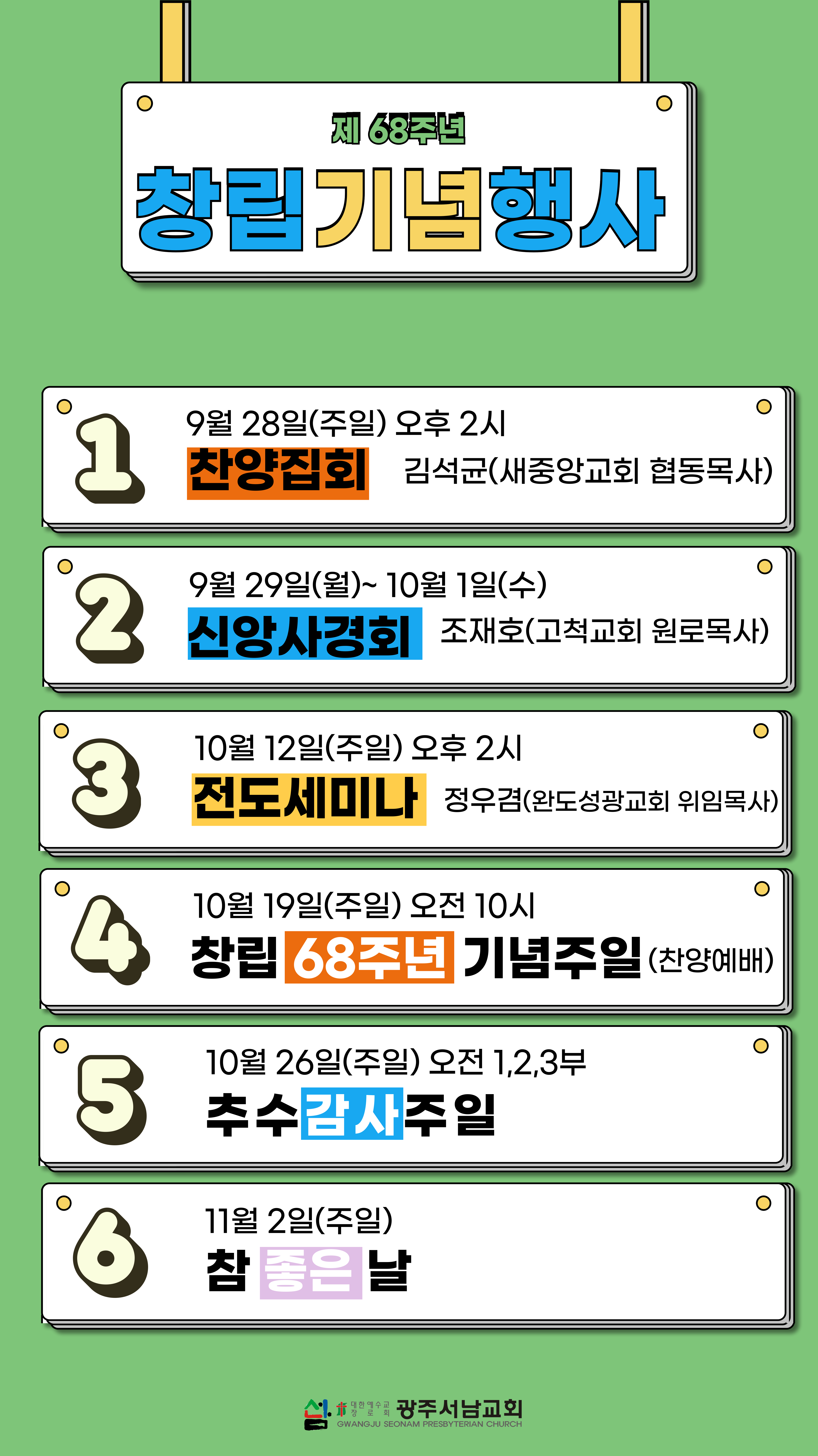 광주서남교회 주간 소식입니다. 발행일:2023.05.27
