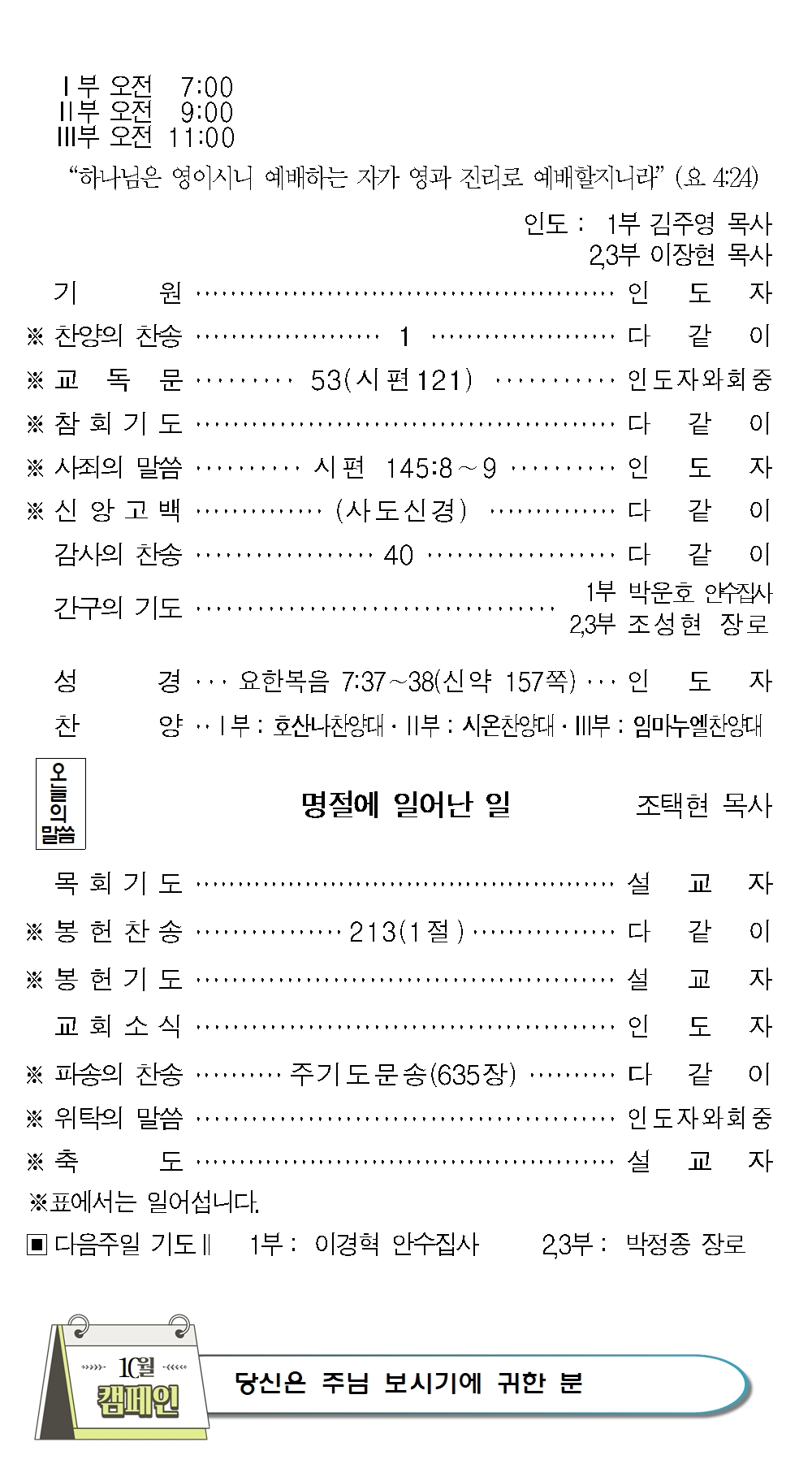 4)초막절은 광야에서 보호하시고 인도하신 하나님께 감사하는 절기였습니다. 초막의 잔치, 물의 잔치, 불의 잔치로 지냈으나, 유대인들은 껍데기만 남았고 알맹이는 잃어버렸습니다. 그 결과 영혼은 갈급했고, 명절의 주인이신 예수님을 거부하며 오히려 죽이려 했습니다.