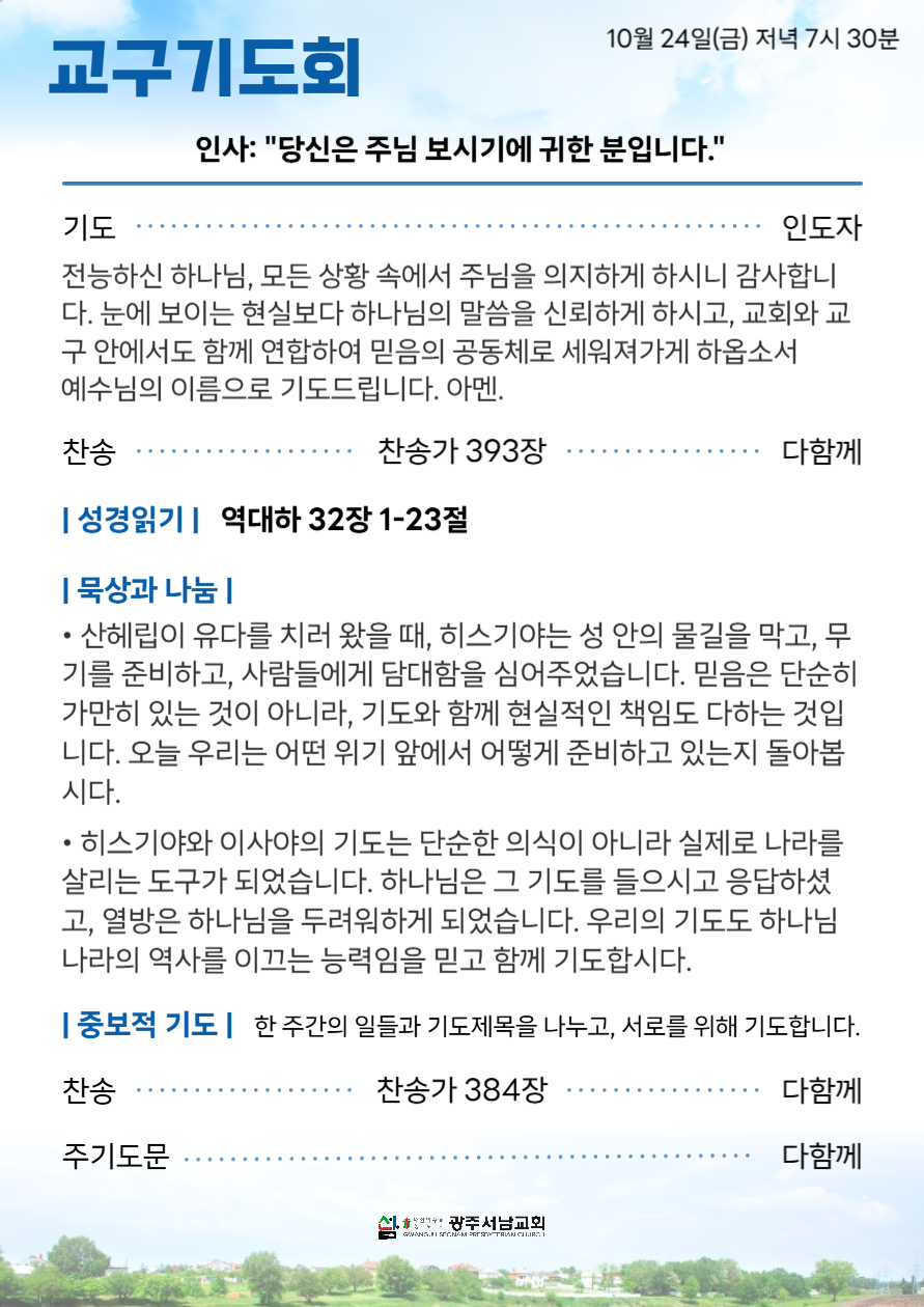 2. 10월 24일(금) 금요기도회는 교구기도회로 각 교구별로 모입니다.