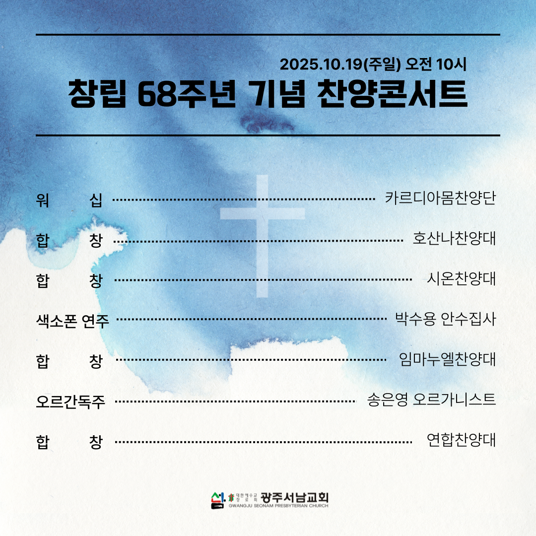 1. 내일은 우리 교회 창립 68주년 기념주일입니다. (창립일: 1957년 10월 17일)