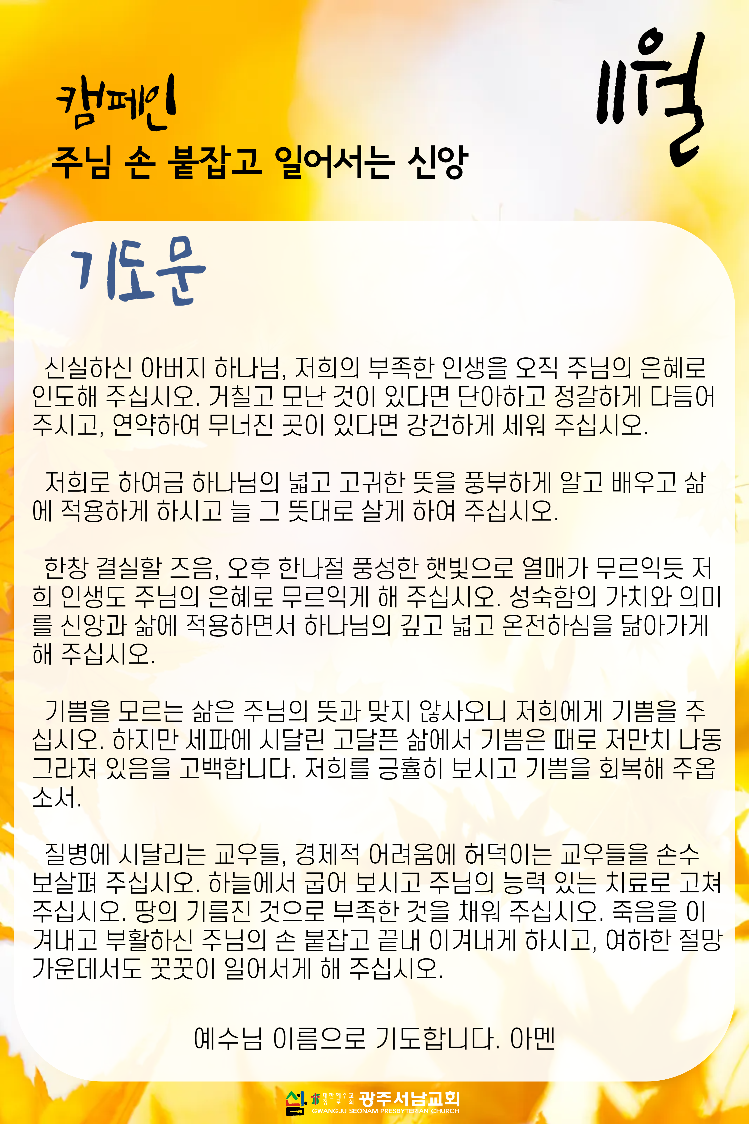 3)예수님은 그의 손을 붙잡으셨습니다. 손을 붙잡는 것은 인격적인 만남입니다. 예수님은 그의 상처를 아시고 마음으로 품으셨습니다. 전도는 누군가를 예수님의 손에 붙잡히게 하는 일이며, 그 만남 속에서 회복이 시작됩니다.