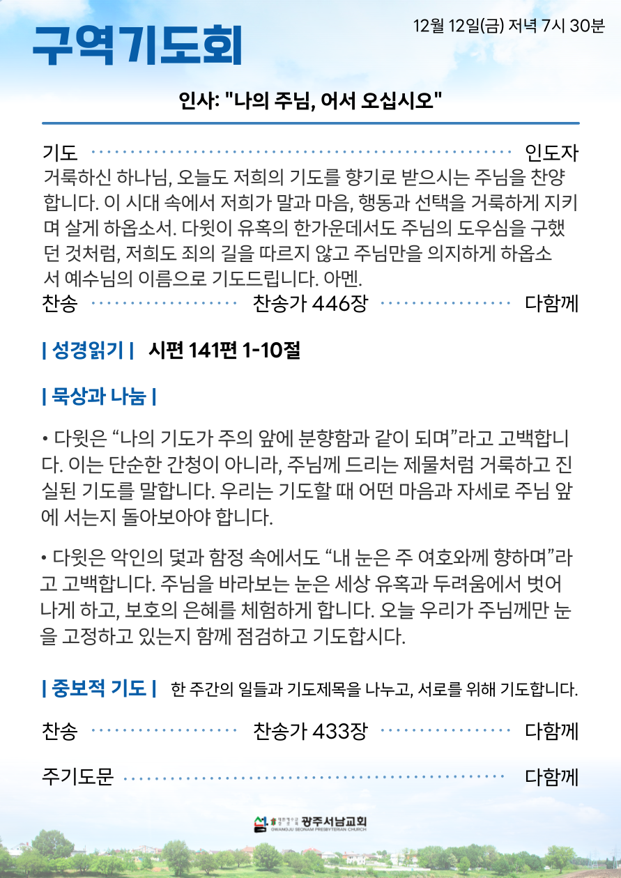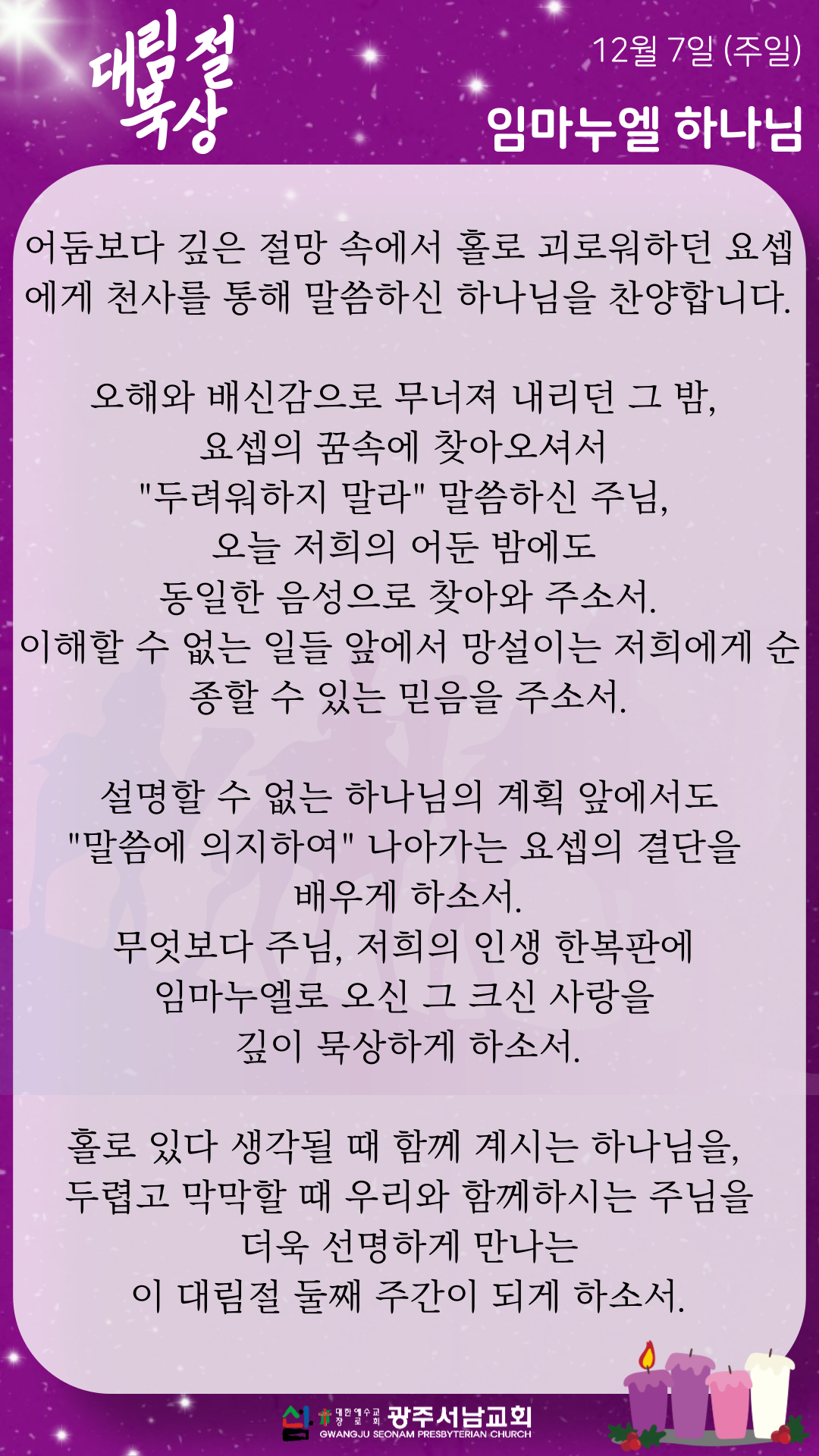 대림절의 기다림은 단순한 시간이 아니라 은혜를 준비하는 시간입니다.